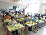 今日から2年生以上の給食がスタートしました。久しぶりの給食に子供たちは「おいしい」「たのしい」と言って食べていました。